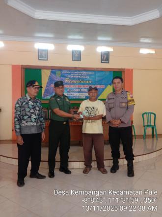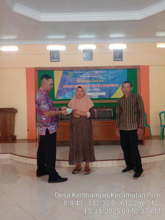 Giat hari ini senin tanggal sembilan belas bulan nopember tahun dua ribu dua puluh lima telah di lakukan penyaluran BLT DD sebanyak 20 KPM, masing - masing KPM mendapatkan Rp. 300.000. Kegiatan tersebut di hadiri oleh BKTM, Babinsa, dan Kepala Desa.